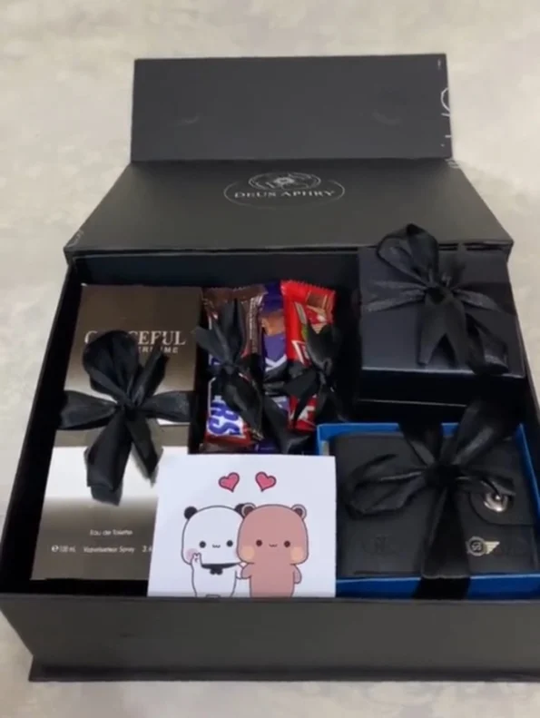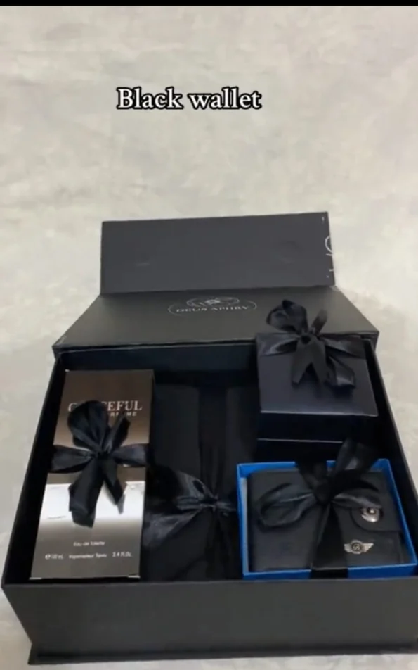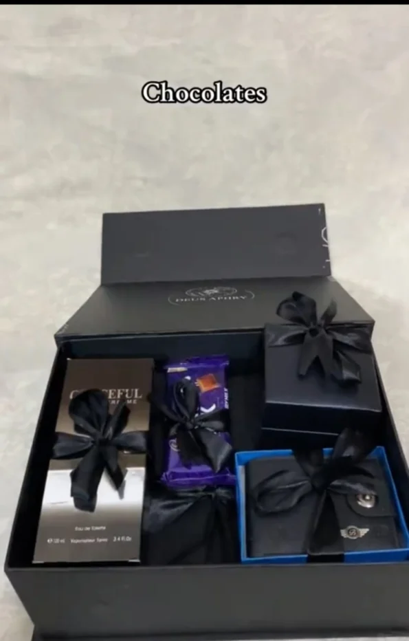 1 Unstiched Black Suit⚫*1 Mens Perfume *1 Mens Watch ⌚*1 Mens Wallet 💼*3 Choclate 🍫